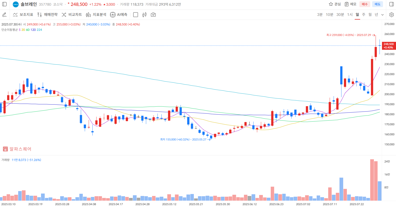 솔브레인은 반도체, 디스플레이, 2차전지 등의 산업에 사용되는 정밀화학 소재를 개발 및 생산하는 기업입니다. 특히 반도체 공정용 화학 재료 분야에서 선도적인 위치를 차지하고 있으며, 반도체 제조 과정에서 필수적인 다양한 식각액(Etchant), 전구체(Precursor), CMP 슬러리(CMP Slurry) 등을 공급합니다. 특히 삼성전자의 GAA(Gate-All-Around) 공정 도입에 따른 실리콘-게르마늄(SiGe)층 식각액 수요 증가의 직접적인 수혜가 예상되는 기업으로 꼽힙니다. 또한 디스플레이 패널 제조용 재료와 2차전지 전해액 소재 등 첨단 산업의 핵심 소재를 공급하며 국내외 주요 고객사들과 협력하고 있습니다.