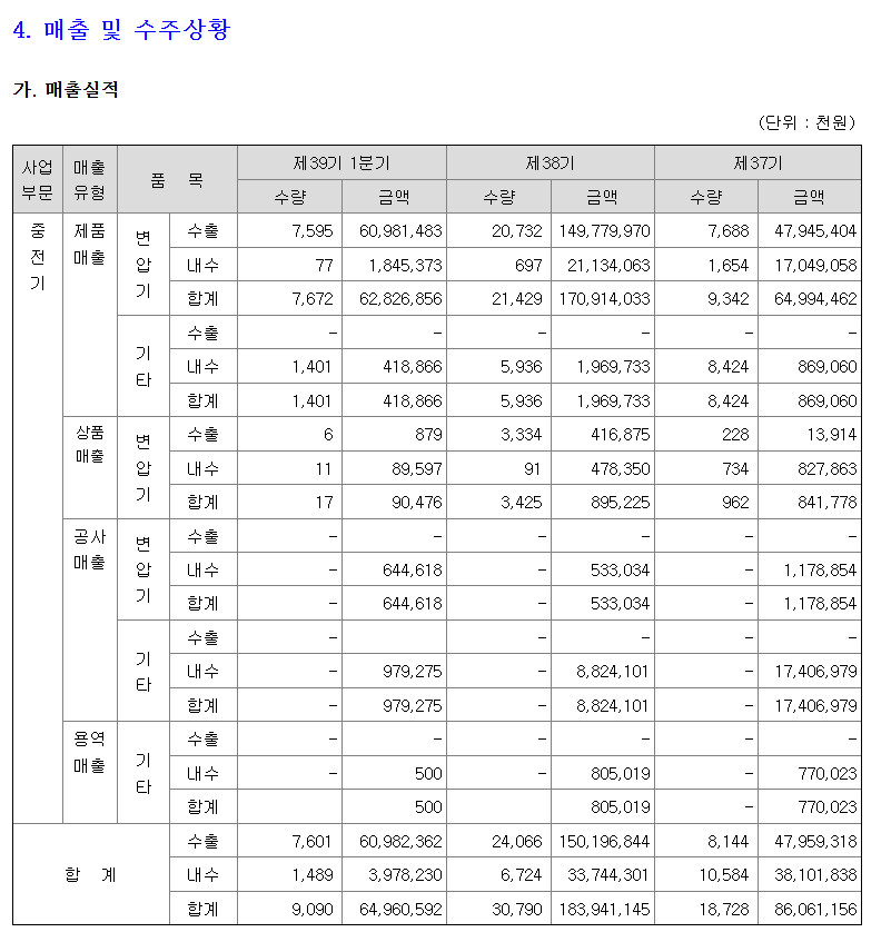 - 한전 고효율 주상변압기 입찰규모 30% 이상 축소 및 국내 건설경기 둔화가 1차원인