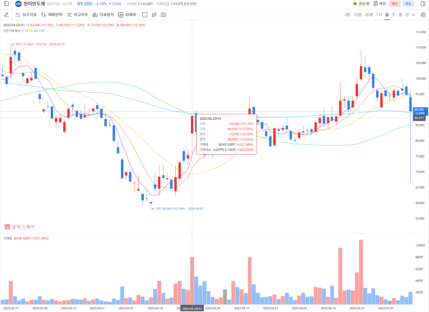 LG전자의 하이브리드 본더 개발은 표면적으로는 HBM 시장 진출로 보이지만, 실제로는 자사의 스마트 가전과 온디바이스 AI 사업 강화를 위한 전략적 투자로 해석됩니다. 현재 HBM 시장의 복잡성과 기술적 난이도를 고려할 때, 현재 한미반도체 주가가 내려가는 것은 뭔가 성급하다는 느낌이 강하지만 여기서 하락폭이 더 추가로 나올 가능성은 충분하다고 보고 있습니다.