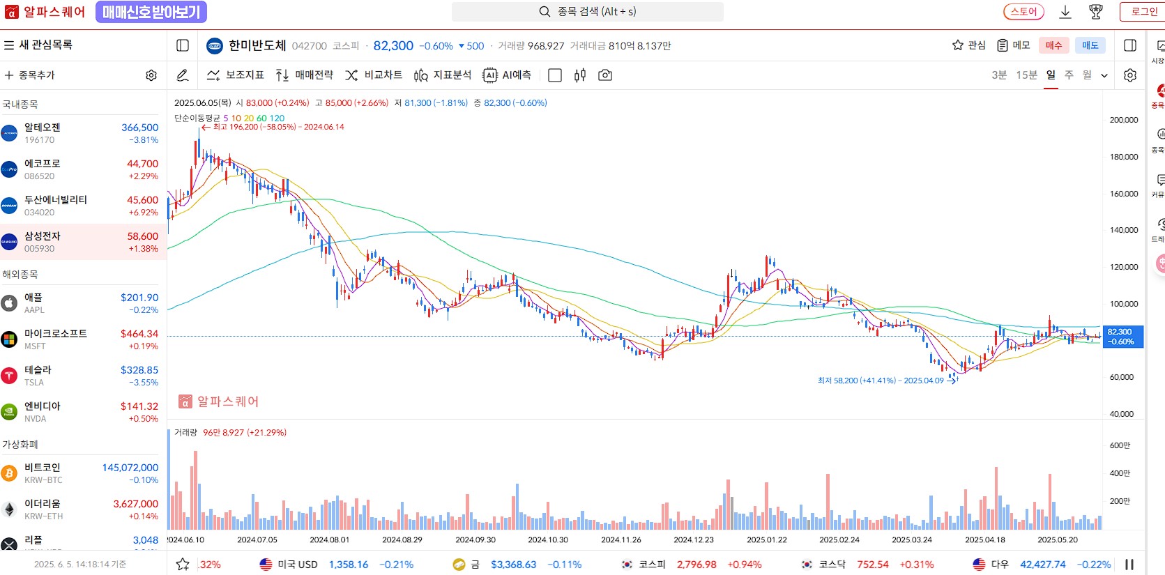 투자자 입장에서 보면, 현재 한미반도체 주가는 분할매수할 수 있는 좋은 기회일 수 있습니다. 독점 프리미엄은 사라졌지만, 여전히 시장 1위 기업으로서의 기술력과 고객 기반은 유지하고 있기 때문입니다.